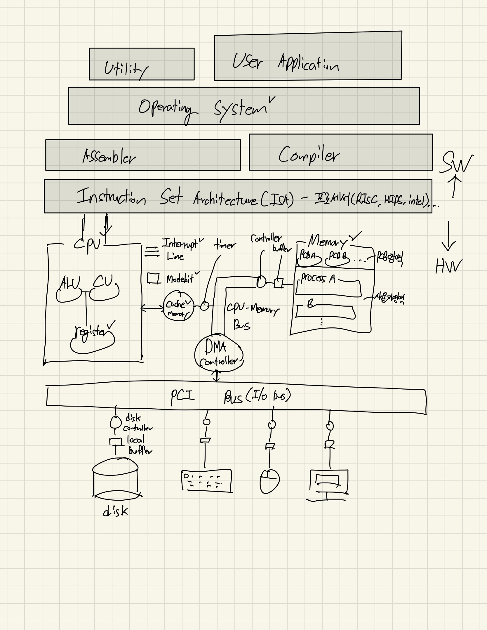 - timer - 하나의 프로세스나 외부기기에 CPU자원이 독점되는 것을 막기 위해 정해진 시간이 지나면 인터럽트를 발생시켜서 자원을 반환시키는 하드웨어이다. (그리고 시분할 시스템에서 현재시간을 계산하기 위해 사용된다)