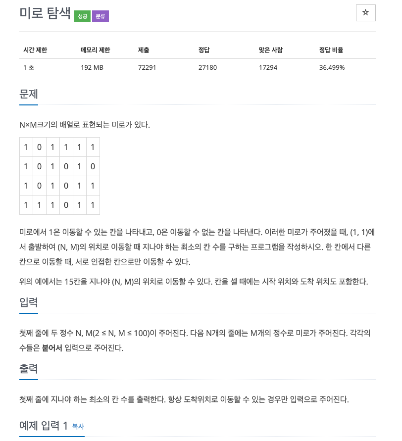 - 그래서 이 문제는 갈림길이 나올때마다 내 분신을 만들어서 한걸음씩 걷다가 출구에 도착하면 그 사람이 걸은 만큼을 계산할 수 있는 BFS로 푸는게 정답이였다.